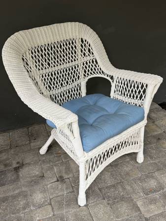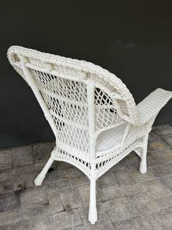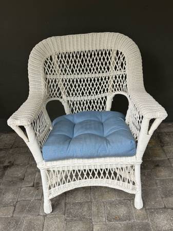 Like new full size white vinyl porch wicker chair. Very comfortable to sit in. Hardly used but in excellent condition since it was stored indoors. Comes with the chair seat cushion, as shown in the...