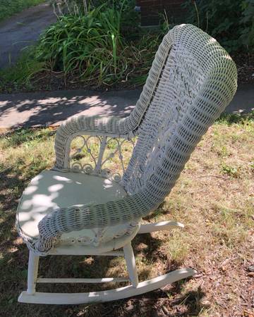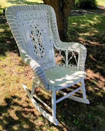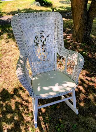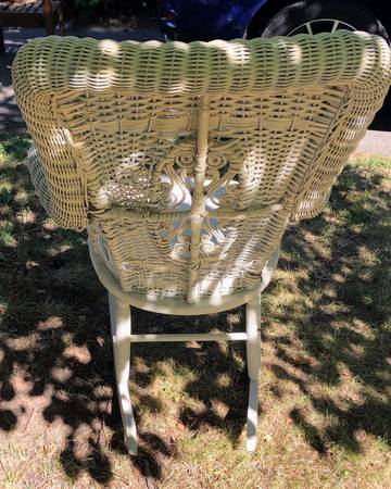 Lovely ornate wicker chair. Dimensions: 29ʺ W 17ʺ D 42ʺ H 15" H of seat