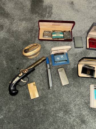 ANTIQUES & COLLECTIBLES: 14K & 10K gold rings, Vintage costume jewelry, Large cigarette lighter collection of over 200 lighters inc. Zippo, Dunhill, Ronson, Vulcan, Parker, Omega, Camel, Skagen Men's watch, Cavalier, Atlantic, Canada Dry, Philadelphia Phillies, etc., The Governor's Edition of the Franklin Mint 50 States of the Union sterling silver medallions, Dan Motill signed framed prints, Paul Breguette 17 jewels pocket watch, KPM porcelain, Primitive tools, Vintage locks, Fine china, Batter bowl, Texaco motor oil sign, Sinclair motor oil sign, Jim Beam Mercedes Benz 450SL, Large collection of Hummels, White & Wood blue decorated stoneware, 10 gallon stoneware crock, Yellow ware bowls, Spongeware, Glass, Crystal, Stemware, Royal china set, Vintage Seneca Ale beer bottle, Murano glass figural birds, The Botanic Garden china, Collector plates of Mickey Mantle, Babe Ruth, Lou Gehrig, Roberto Clemente, Nolan Ryan, Hank Aaron etc, Wall art, Paintings & prints, Lladro, Lamps, Seth Thomas mantle clock, Flow blue vase, Vintage post cards, Darth Vader Star Wars figure, Pottery, Fine porcelain, US military uniform w/ patches, US Army satin pillow covers inc. Camp Bowie, Camp Pickett, Fort Sill, Fort Belvoir, Camp Livingston, Baer Field, etc.; 1955 NY Transit brochure, Petrolina maps, Vintage linens & hankies, Vintage framed photograph, Steamer trunk, Coin silver spoons, Spoon collection, Gruen 17 jewels automatic Men's watch, Parker 51 pen set, Norton motorcycle sign, Vintage Trumpet call Hohner harmonica, Vintage Fire Department certificate of fitness, Large collection of beer steins, Figural dog statue, Coleman lantern, Vintage baseball post cards, Cast iron ware, Cuckoo clocks, Randall & Stickney bench gage, Christmas tree & decor, Emmitt Smith, Jerry Rice, Barry Sanders, Troy Aikman photo, Joe Dimaggio NY Yankees photo, American Electric antique oak telephone, Military patches, Pocket watces, Hunting knife, Dime register bank, Fishing lures, Pocket knives, Real photo post cards, Norman Rockwell print, Sawyers View-Master, Gorgeous Michael Blaser signed prints, 1971 United Nations Association First Day covers, Vintage Olympic baseball glove, Kitchenware, Antique scale, Crowley's cream cheese can, Household goods, Silver plate flatware, Antique wood planes, Hull Art pottery, Yamaha stereo, Pierce motorcycles sign, Men's clothing, Rock & Roll CDs & DVDs, AND MUCH MORE!
