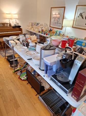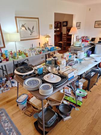 Very large estate sale, antiques, leather sofas, stackable oak bookcase, MacKenzie Childs, lot's of custom, sterling jewelry, vintage handbags, baseball, football and basketball collectable cards, vintage games and toys, collection of precious moments, Waterford crystal, kitchen accessories, collectable glassware, lot's of vintage and new clothes, stereo unit and records, computer desk and accessories, kitchen aid mixer, lot's of tools, morgan silver dollars, books, Syracuse china, comics,collectable dolls, art works, large parrot cage, so much more. Please park in driveway if possible, 31st and 1st 9 until 2 u can email with questions