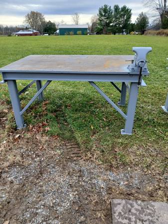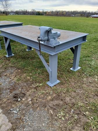 Choice of 8'x4'x36" high with 1/2" top with vise or 6'5"x4'x37" high with 1" top with vise. Heavy structural steel frames. Both have wilton mödel 1780 swivel vises with 8" wide jaws. 1600 each. Will...