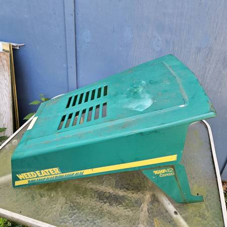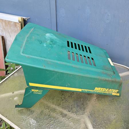 Weed Eater 16hp/42" riding mower hood. Text only.