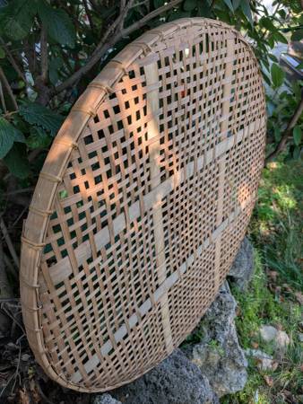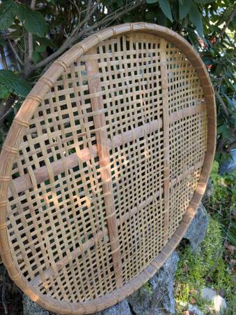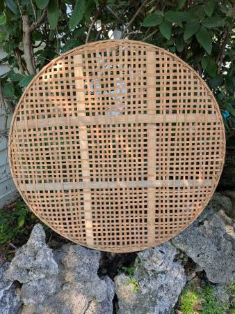 An impressive hand made basket that's as functional as it is decorative It's in perfect condition with no damage. It measures 33 inches in diameter and is 1 3/4 inches thick. Call 315-637-Seventeen...