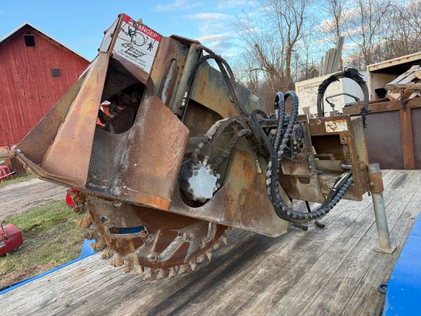 For sale: Bobcat Model WS18 Wheel Saw Trencher Skidsteer attachment for Asphalt, Concrete or frozen Soil. In good working condition. Will trench 6” wide up to 18” deep. Carbide tooth Blade. Operating weight is 2,249 pounds.
