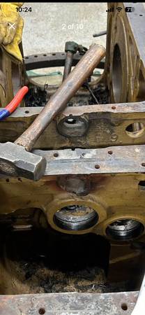 1750 rear end. Oil pump gear bearing went out and egged hole (one of the smaller holes at the top)