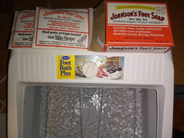 Comes with a box of unused foot soap packets to toss in if you choose.