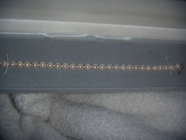 GORGEOUS FRESH WATER PEARL BRACELET HAND KNOTTED PEARSL WITH A 14 K GOLD CLASP..............IT IS A 7 1/2 INCH AND I PAID $210 FOR AT EGON ERLANSHIEL ,I THINKS THATS HOW YOU SPELL IT.....................3 YEARS AGP........ALL THE PEARLS ARE MATCHED AND PERFECT.......WOULD MAKE A WONDERFUL GIFT.......THERE ARE 28 PEARLS.......YOU CAN CALL ME AT show contact info