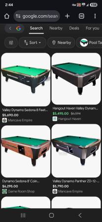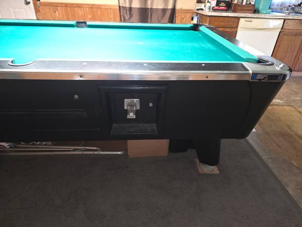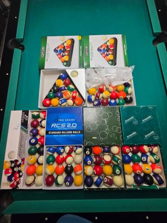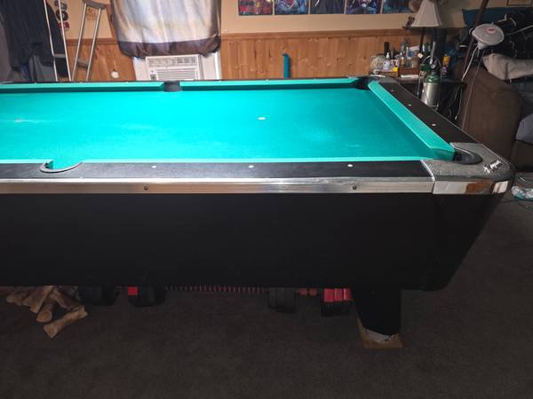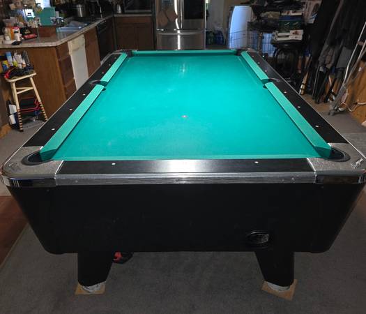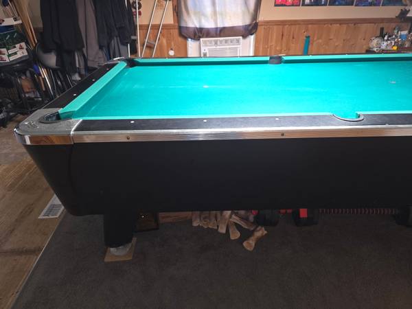 Looking to sell a 8ft dynamo pool table slate for my kid that no longer plays on it. It's in pretty good condition could eventually use new felt to make it a perfect top but still plays really good the way it is. Asking $1100 for just the table.$1500 or b/o for the table and everything else all the sets of balls pool cues and extensions & cue holder and the tip tool and top.The rails that are on it are not the original they make the tables pockets more smaller for learning more precise shooting. It also comes with the original rails unsure the condition never was taken out of the box to check them out. It does have the slots for the quarter usage but when it was bought it wasnt set up to be used not sure how to set it up to be used either. ITS BEING SOLD AS IS...