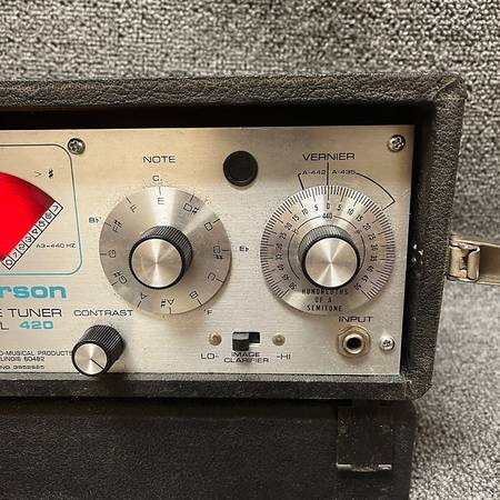 The Peterson Strobe Tuner Model 420 is a classic mechanical strobe tuner favored by musicians and technicians for its accuracy.