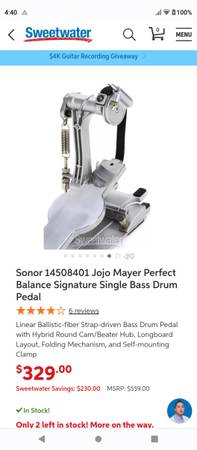 I am selling a Sonor JoJo Mayer Perfect Balance bass drum pedal in nearly new condition with carry bag and beater. It was used only occasionally and is in excellent condition Also included is the...
