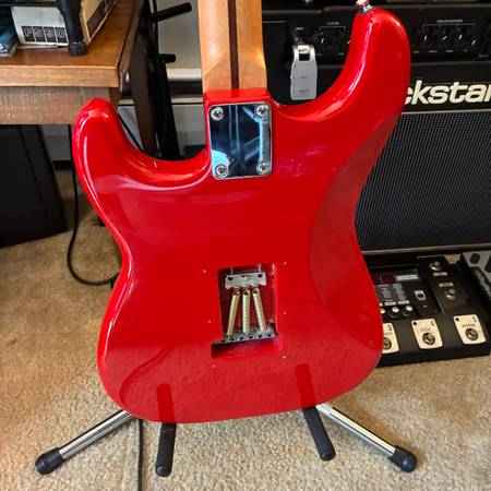 This is a custom modified ZaxCaster. It began its life as a Starcaster (by Fender) Stratocaster standard. It is in solidly good cosmetic and playing condition with several professionally-installed, high quality upgrades.