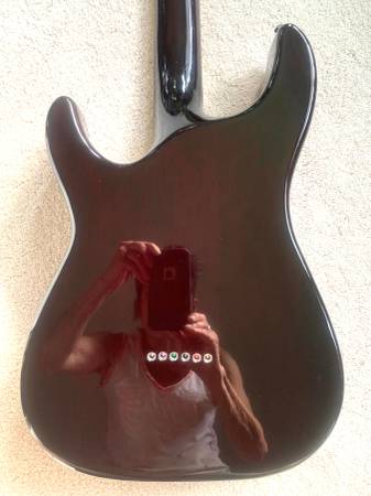 - Mahogany body with flamed maple top, creme binding, and platinum hardware.