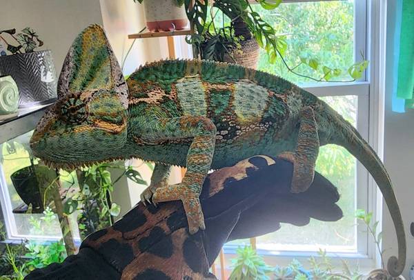 Male Chameleon. Year and a half old. Cage, bottom tray, linear uv and heat lights, fogger, vitamins and decor/ plants. Cage is a reptibreeze XL 24x24x48. Must pick up. Please have knowledge of...