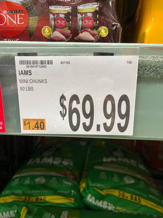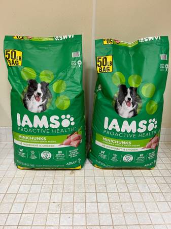 Iams Mini Chunks Proactive Health Chicken and Whole Grain Recipe - 50 lb. bag - 2 each - Purchased recently for very senior dogs that promptly required prescription vet diet. Unopened, perfect condition. BJ's Price $69.99+$5.60 Tax=$75.59/bag $65 each, cash and pick-up only.