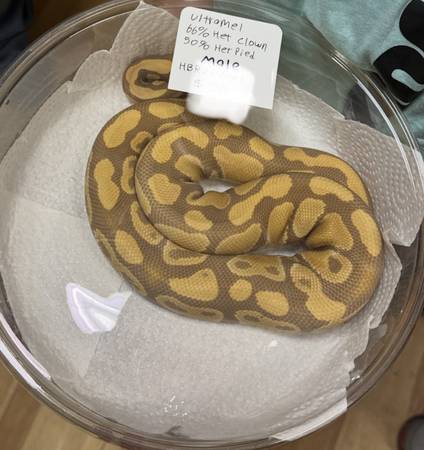 Male bananan highway 1 year old 300 Male Ultraman het pied het clown 250 Female pastel clown 300 Female black pastel yellowbelly pied 350
