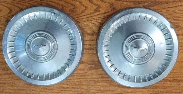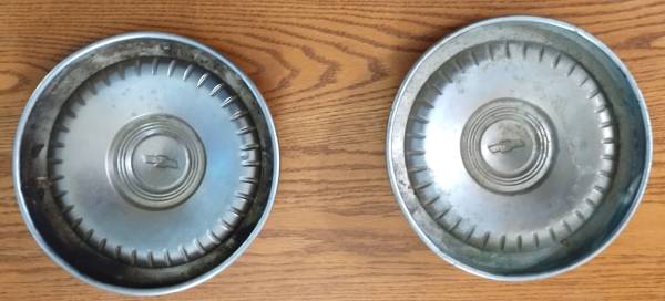 One pair of 1960's Chevrolet Hubcaps - Dog Dish Style
