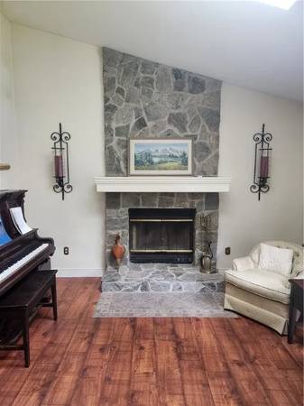 Lovely 4 bedroom home 2340 sf on a quiet Cul de sac. The fiirst floor features a very spacious floor plan perfect for daily living and entertaining. The entry leads to a very spacious kitchen with granite counter tops, large center island and plenty of cabinets with adjacent eating area. This overlooks a large family room with vaulted ceiling , sky lights and a cozy wood fireplace with stone face. A formal dinning room is off the other side of the kitchen opening to a formal living room through glass french doors. A mudroom off the kitchen contains hook up for washer/dryer leading to a 2 car garage. Off the entry is a home office perfect for working from home and a half bath down the hall. Upstairs are 3 spacious bedrooms and full bathroom. A large master bedroom with vaulted ceilings, walk in closet and master bathroom. The bathroom has vaulted ceilings with a sky light, large tile shower with built in bench. The basement has 2 finished rooms good for a kids play room, storage or extra bedroom. A storage area with washer/dryer hookup and a work shop. Outside is a front covered porch, large patio in back overlooking a waterfall and pond. Great for relaxing or entertaining.