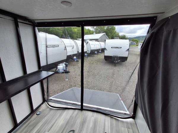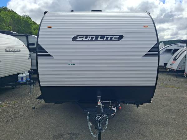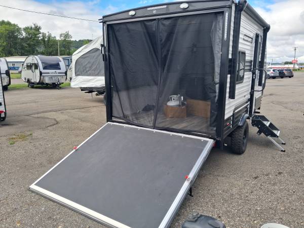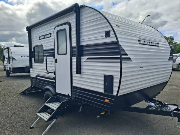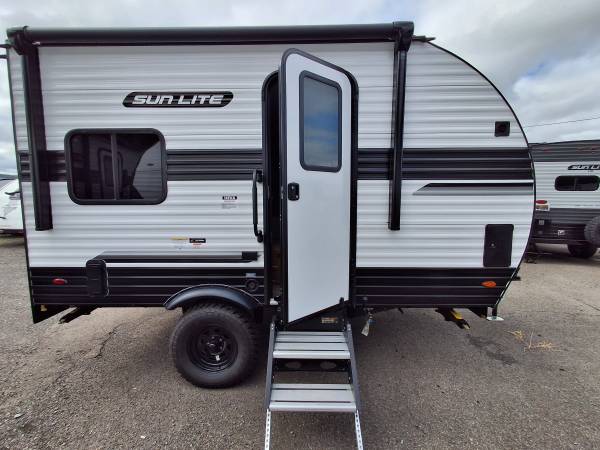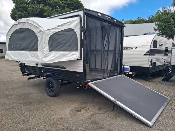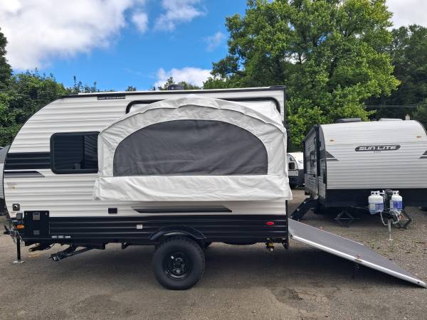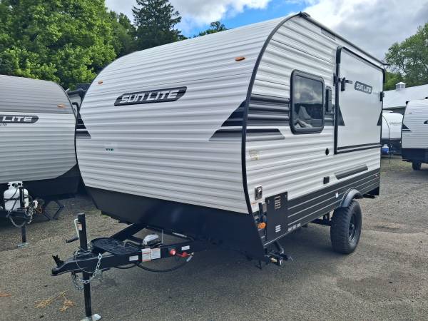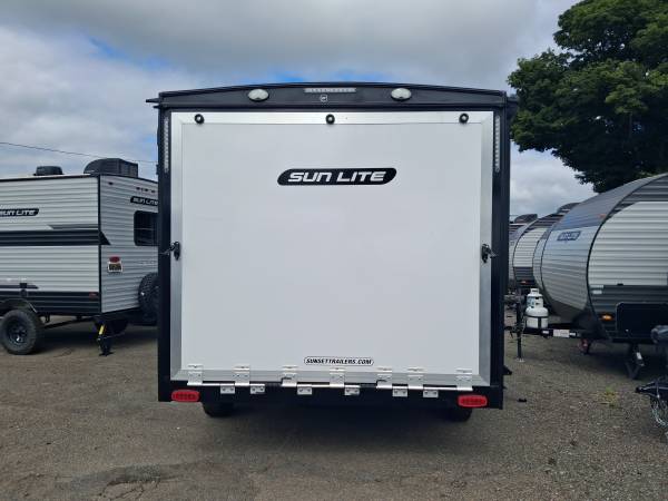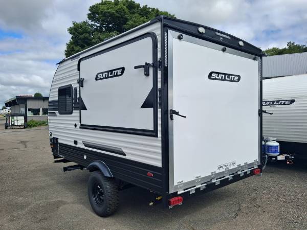 Introducing the brand new 2026 Sunset Park SunLite 14THX - a versatile combination of a camper and toy hauler. Weighing in at just 2800 pounds, this camper comfortably sleeps up to 4 people and features a convenient eatery bar, wetbath with toilet and shower, as well as both heating and air conditioning. Don't miss out on this lightweight and fully equipped camper - the perfect choice for your next adventure!