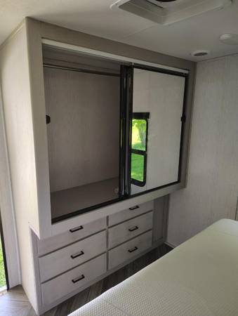 30' Heartland Mallard Camper, 2023, excellent condition. 2 propane tanks, skirting, insulated water hose, power adapter, levelers, 2 slide-out (living/dining room & bedroom), king size bed,...