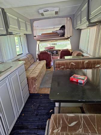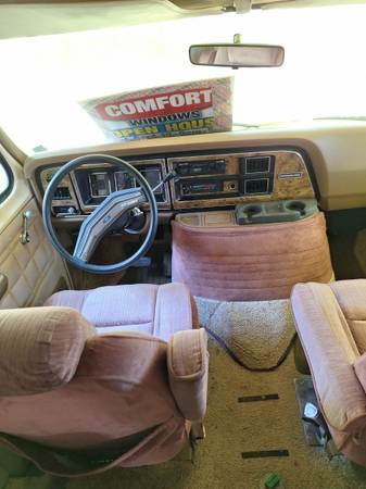 Clean,no rips in interior,however windows were left open and original owners sealed weep holes on roof for ac, so there is water damage. She does run great 460 engine 62 000 miles. Could be registered and driven or for parts.
