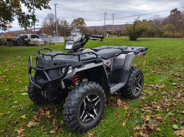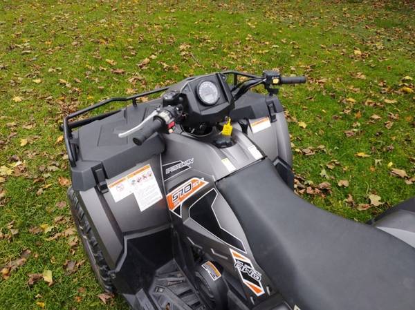 2015 Polaris Sportsman 570 SP with 2,348 miles in nice shape. The Sportsman 570 SP features a powerful liquid cooled 44hp engine with fuel injection. Other features include a satin gray finish, power steering, selectable 2wd / 4wd, digital gauge package, automatic transmission (high / low range), reverse, dual a-arm front suspension, independent rear suspension, 14" aluminum wheels and 26" tires. A 2500lb winch, front / rear bumpers and front rack extender have been installed. Located at K&H Motor Sports in Little York, just 30-minutes south of Syracuse. Priced at $4,799 plus tax and registration. Financing is available! K&H has been in the business of "Makin' Life Fun" since 1968 and we strive to provide top notch customer service. Enjoy a great buying experience with our team. Trades are considered. Parts / accessory discounts! Call 607-749-2821 or 1-800-628-1215. Visit www.knhmotorsports.com for all our inventory. Thanks for looking!