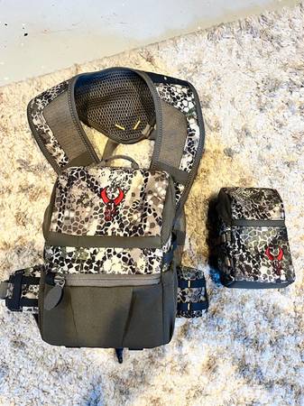 NEW - NEVER USED - Badlands Bino X created the new and improved bino chest harness. Ergonomic, Quiet Interior Fabric, Zip-No Magnet Closure, each piece has a stretchable tether and quick-release carabiner rings. Unconditional Lifetime Warranty