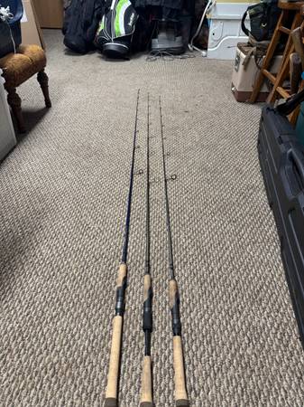 Ark Invoker tour bait casting rods 7’6” medium heavy (regular) 7’4” medium heavy (mod. fast) glass -$100 a piece or $180 for both. Basically new just wasnt what I was looking for St.Croix Avid ( new...