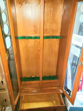 nice two door gun cabinet . will need a new lock since it didn't have a key . cheap on ebay or amazon . first $40.00 takes it . please call or txt as i do not check this email often thank you .