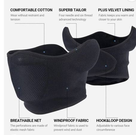 I have one new heavy duty mask can use for anything and for motorcycles and it's reversible, or cold. I have another new mask basically used for cold or skiing.