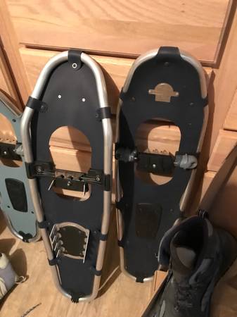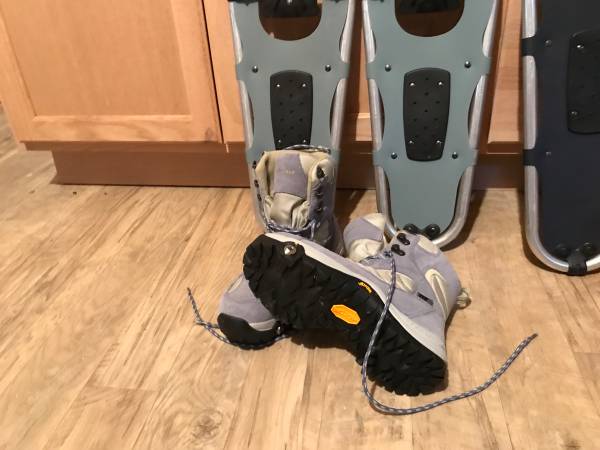 Ladies snowshoe size 8 (worn once) with snowshoes Men’s snowshoe boots size 12 & 13 with snowshoes. Never worn, size 13 boots still in the box. I will sell separately. $35 for each of the boots...