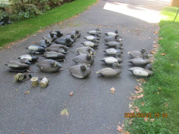 Magnum size Bluebill decoys , 16 inch bodies, by Carry Lite, Victor, and home made . Some have keels added, all ride very well in rough water and are much more visible than standard size decoys. 35 available. $60 per dozen. Being on the wrong side of 80 I can no longer hunt but want them used by someone .