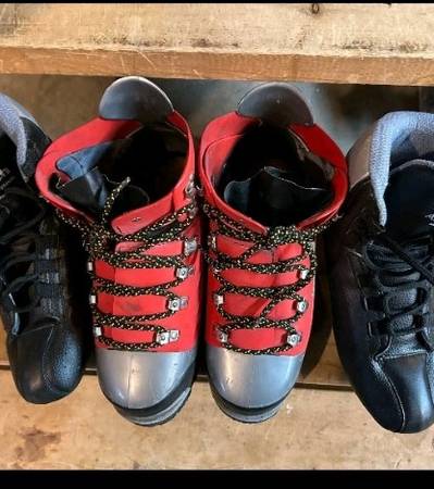 Koflach Degre Mountaineering Boots. These are plastic double boots designed for mountaineering, particularly in cold weather and technical snow/ice conditions.