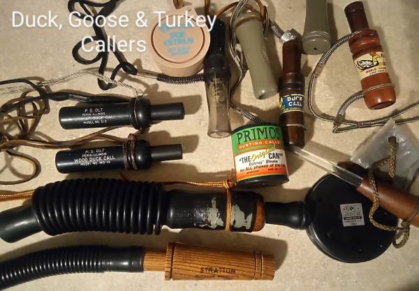 Anything a medium size man would need for bird/deer hunting. I have 5 duck calls. 1 deer call. 1 sex scene wafers