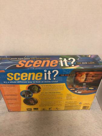 Scene it? Movie Edition DVD Board Game, The premier, interactive movie trivia game, featuring real movie clips! This game is in new condition. The box is open, but game has barely been played.
