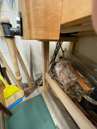 This is a Hoffman and Hammer work bench made in Germany from solid European Beech. It has two vises,two bench dogs and one drawer. Infrequently used. Weighs about 290 pounds so you will need a pick up truck and two strong people for moving. Thank you for looking!