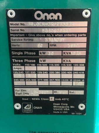 30 KV Onan genset / generator. Has Ford 6 cyl engine that runs on propane. My father bought this directly from Niagara Mohawk in good working order when taken out of service. He has other generators and never ended up needing to use this one. Asking $1200. Cash only. Pick up location is in Central Square.