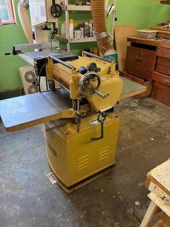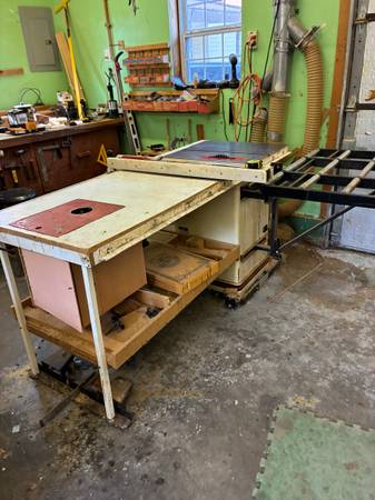 18” band saw, 8” jointer, 10” cabinet saw with front/side extensions, 15” planer, 2hp whole shop Oneida air system cyclone system, delta Mortimer, biscuit jointer, Leigh 24” dovetail jig and much more.