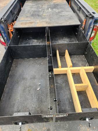 Custom built tool box forsale built Feb. 2025 built to handle 2,000 lbs above and 1,200 lbs.+ in the drawers it's painted with bed liner paint the dimensions of the box is 75 in long by 50 in wide and 14.75 in high its in a 6'7" pickup bed the two drawers each measure 73.5 in long by 22.5 in wide by 10.5 in high asking $2,200 obo shoot me a offer I need it gone its in my way switched to a trailer