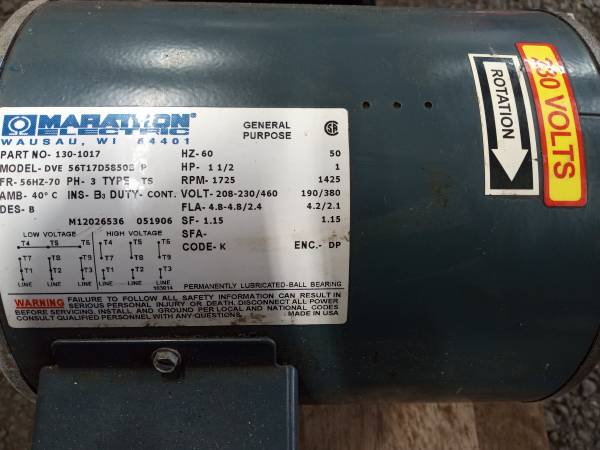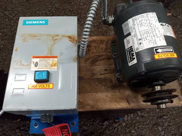 I have two electric motors with magnetic starters. One is set up for 230 volts and the other is set up for 460. Both are three phase motors. Came off of air compressors. Asking $50 each or B.O.