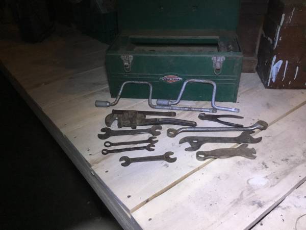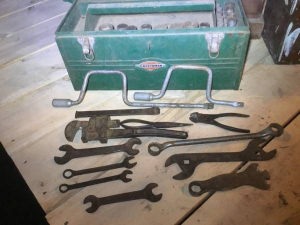 Old craftsman tool box with socket set and few odd and end hand wrenches. Call or text at 315-4four0-7ninethree5