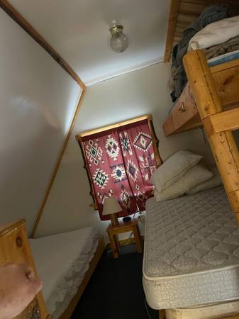 Rustic but modern vacation cottage. Loft with twin and queen size bed and twin size upper bunk (see picture) sleeps 4 adults.