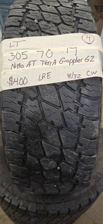LT 305 70 17 Nitto AT Terra Grappler G2 Load range e Treads at 8/32 $300 for the set of four Call or text