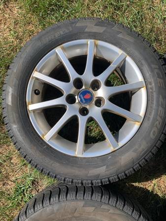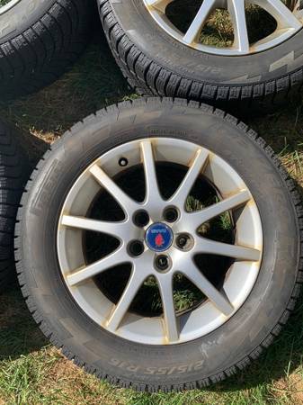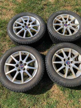 215/55/16 excellent condition. Came off 2008 9-3. These are the best snow tires I ever had.