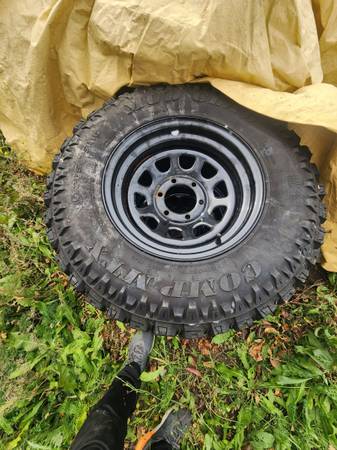 4 MTtires on D-hole rims. 6 lug off 2004 tahoe. Center caps and lug nuts included. . Text to see.