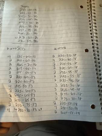 I have Tons of good used tires from sizes 14s n up Singles start at $20 Pairs of 2 are $40 n up Sets of 4 are $140 n up We also mount and balance for extra money We get new used tires in every week...