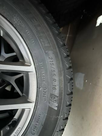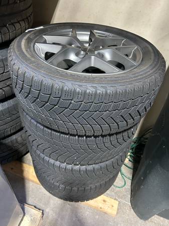 For sale I have 4 gray 16 inch wheels with 215/55r16 Michelin x-ice snow tires on them all with excellent 9/32 tread depth. 5x105mm bolt pattern +38mm offset and backspacing 5.511”they where used on a Chevy bolt for around 10k miles. One of the tires is flat the tire shop said they couldn’t patch it but it might be able to be plugged on your own and another tire was plugged but holds air fine and did a couple of thousand miles. I’m only selling because I decided to just keep one set of rims and do all seasons because I don’t drive as much as I used too asking $800 OBO